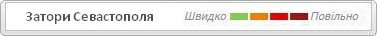 Кнопка «Дивитися затори Севастополя» дозволяє включити / відключити функцію поточного стану автомобільних доріг у місті Севастополь. Якщо активувати сервіс, з’явиться схема завантаженості автомагістралей Севастополя в режимі онлайн. За допомогою карти пробок Севастополя можна подивитися, де саме затори у Севастополі зараз і спланувати оптимальний маршрут автомобілем або громадським транспортом. Попереджувальні знаки показують, де у Севастополі забороняється в’їзд усіх транспортних засобів на даний момент. Завантаженість севастопольських автомобільних доріг визначається відповідним кольором: зелений (проїзд вільний, заторів немає, швидкість руху 50 км/год та вище), жовтий (дорога майже вільна, швидкість від 25 до 50 км/год), червоний (тягучка, швидкість від 10 до 25 км/год), темно-червоний (затор, швидкість від 0 до 10 км/год).